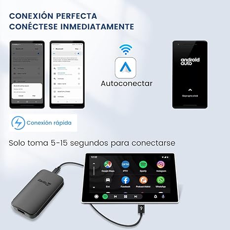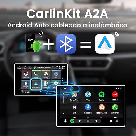 ¡Hemos Encontrado La Solución Para Android Auto Por Cable! Simplemente Enchufe Nuestro Adaptador USB En El Puerto USB De Fábrica Y Utilizará Bluetooth Para Hacer Una Conexión Inalámbrica Con Su Vehículo.