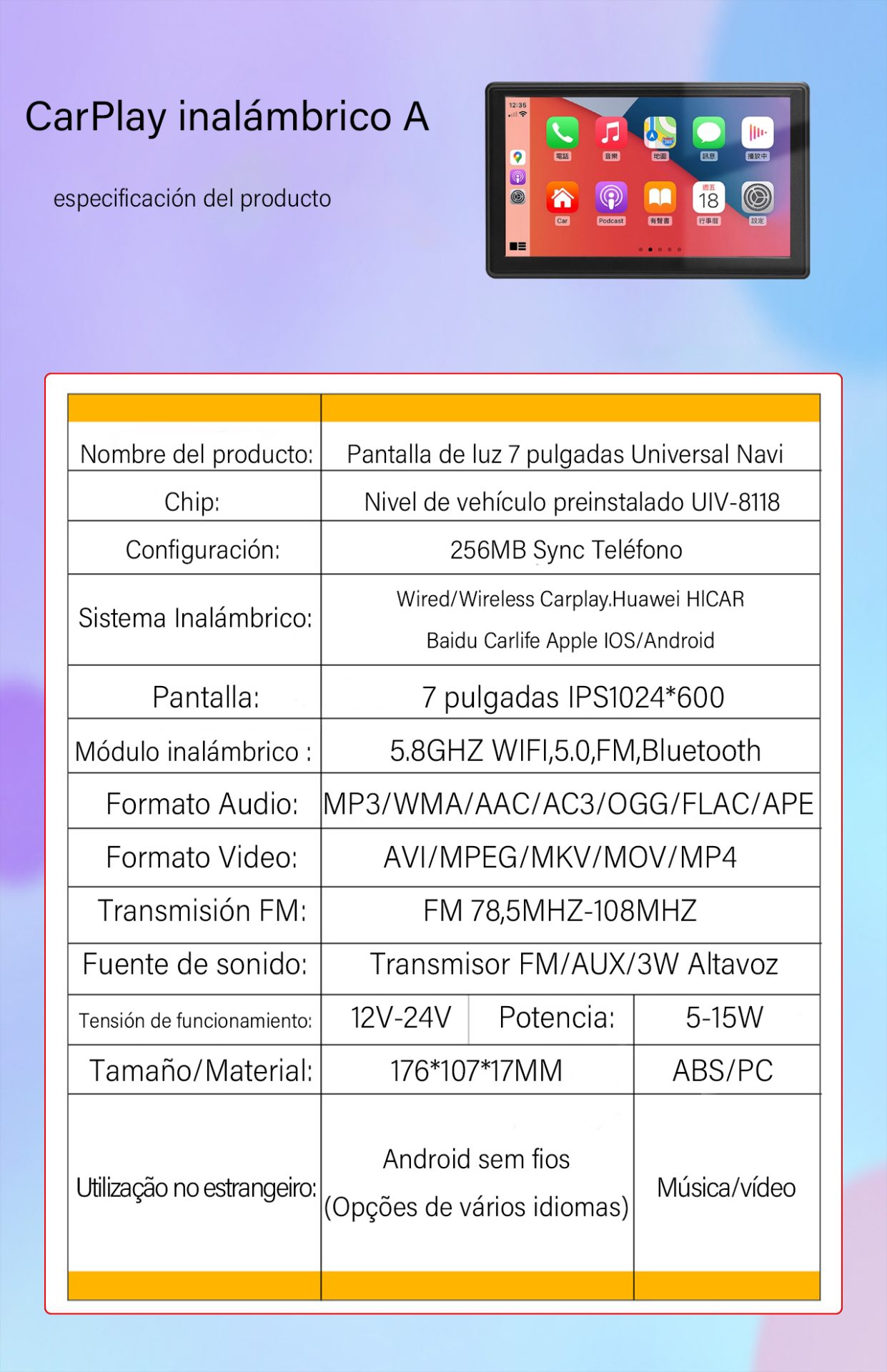 - Sistema inalámbrico: CarPlay、Android Auto inalámbrico