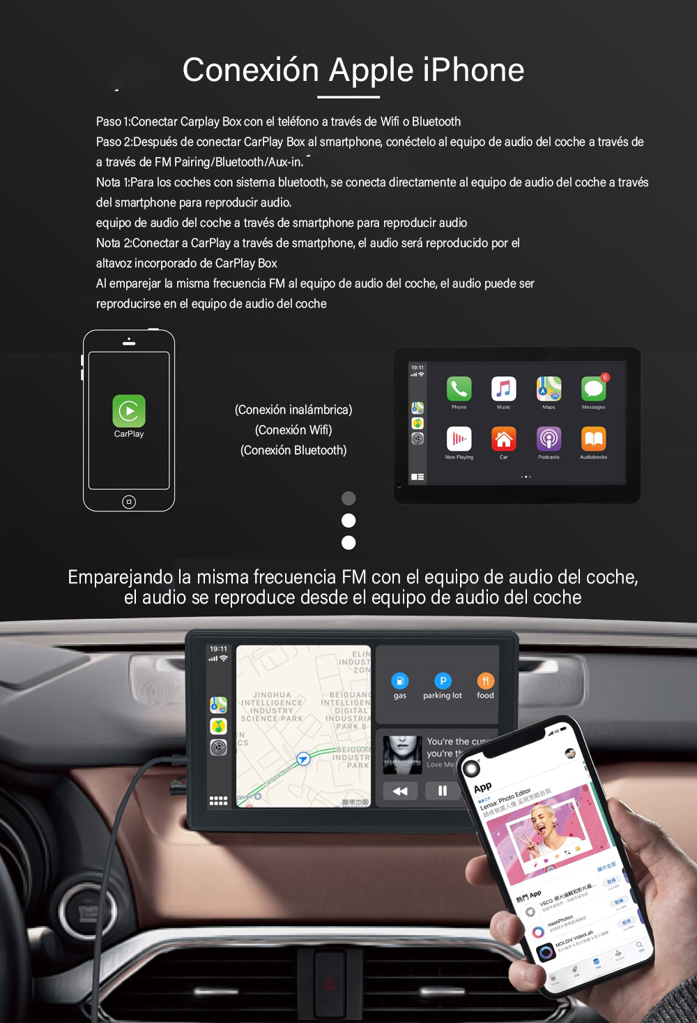 Si Usted No Tiene Un Elegante Nuevo Estéreo Con CarPlay O Tiene Un Coche Antiguo, Esta Es La Manera Más Fácil De Conseguir Apple CarPlay En Su Coche. Esta consola de salpicadero Apple CarPlay es una pantalla independiente que se fija al salpicadero o al parabrisas de su coche. Puede Conectar Su Teléfono Con Esta Consola CarPlay Fácilmente Mediante Bluetooth O Wi-Fi.