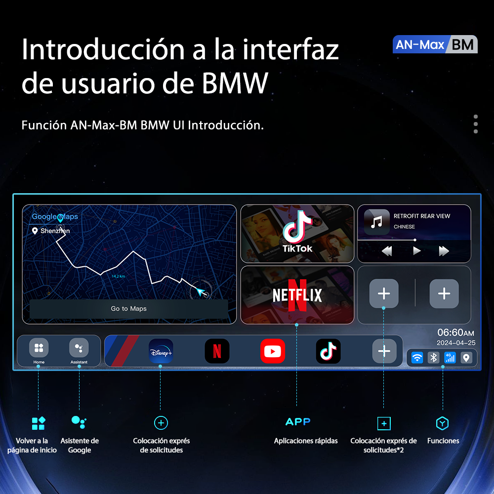 R: Puedes controlar el BMW AI Box utilizando la función táctil, el mando o los botones OEM de tu vehículo.